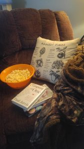 Today, though, I’ve decided to gift myself with time. I lit the fire and made some popcorn, grabbed a blanket and tucked myself in with my stack of books and a glass of delicious raw, whole milk to keep me company.